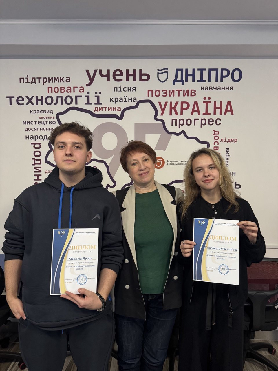 Вітаємо з перемогою у Всеукраїнському форумі лідерства 2025 учнів 11-МІ класу: Яроша Микиту - 1 місце (вч. Летуча О.В.), Євстаф'єву Єлизавету - 2 місце (вч.Летуча О.В.). У конкурсі бізнес-проєктів прийняли участь близько 100 учасників з усіх регіонів України, але проєкти Яроша М. "DniproFresh" та Євстаф'євої Є. "STEAM-САД" зацікавили жюрі своєю ефективністю, креативністю та інноваційністю. Переможці нагороджені грантами на навчання, в еквіваленті 92000 грн та 46000 грн, відповідно. Бажаємо їм успіху і перемог у нових проєктах!